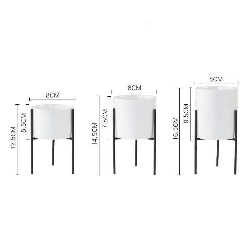 Verpakking: 1 set (1x witte keramieken bloempot + 1x ijzeren frame)